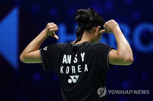 epa10532021 Number 2 seed An Se Young from Korea celebrates victory against Number 4 seed Chen Yu Fei from China during the Women?s Final of the All England Open Badminton Championships in Birmingham, Britain, 19 March 2023. EPA/Tim Keeton