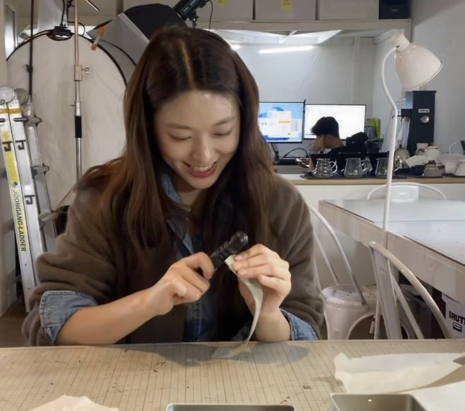 공개된 짧은 영상에는 설현이 한 가죽 공방을 가죽을 다듬는 모습이 담겨 있다.