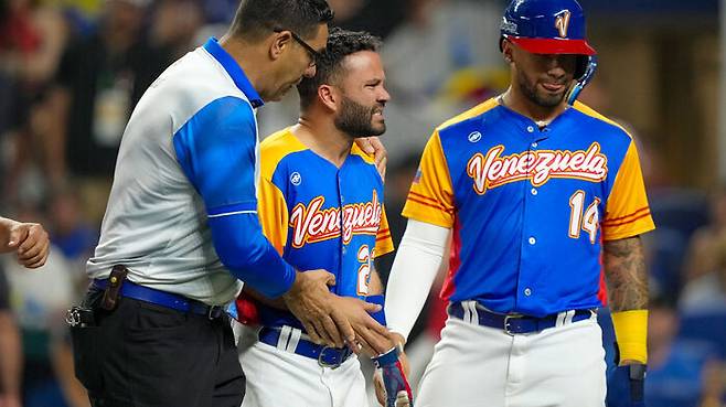 베네수엘라 국가대표로 WBC에 참가한 알투베는 전날 열린 미국과 8강전에서 5회 타석에 나섰다가 상대 투수의 시속 154.5km 빠른 공에 손가락을 맞았습니다.