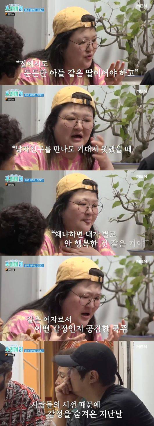 그는 “나도 집에서도 든든한 아들같은 딸이어야하고 동생한테는 멋진 누나, 밖에서는 멋진 선배, 멋진 연예인이어야 했다. 남자친구를 만나도 기대지 못하는 게 화가 나더라”고 토로했다.