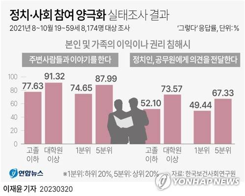 [그래픽] 정치·사회 참여 양극화 실태조사 결과