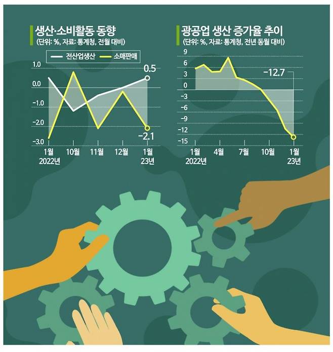 제조업 생산이 줄어든 것은 국내 소비, 해외 수출이 모두 부진하기 때문이다.