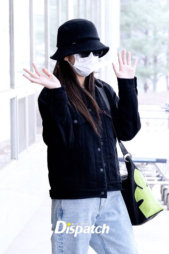 지수는 이날 청바지에 블랙 재킷으로 시크한 공항패션을 연출했다. 러블리한 포즈로 깜찍한 매력도 뽐냈다.