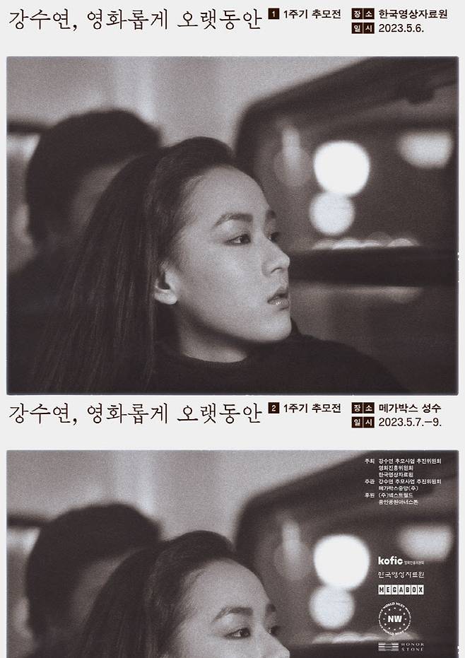 '강수연, 영화롭게 오랫동안' 1주기 추모전은 5월 6일(토) 한국영상자료원과 5월 7일(일)부터 5월 9일(화)까지 메가박스 성수에서 진행한다.