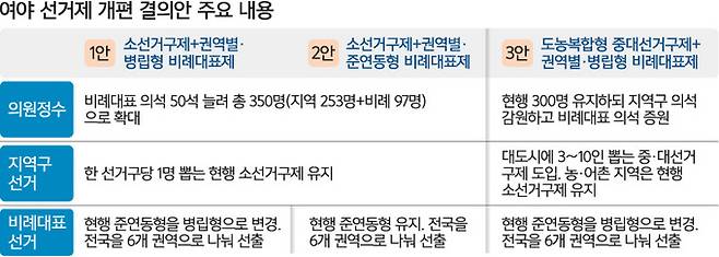 “의원정수 확대 빼고 1·2안 합치자” 요구