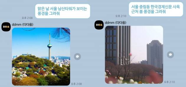 다다음은 이용자가 만들고 싶은 이미지에 대해 간단히 설명한 뒤 ‘그려줘’라고 요청하면 이미지를 보내줍니다.