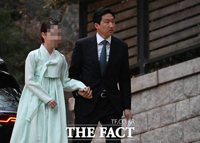 고 정주영 현대그룹 명예회장의 22주기를 맞아 범현대가(家)가 20일 오후 서울 종로구 정 명예회장의 옛 청운동 자택에 모인 가운데 정기선 HD사장과 부인 정현선 씨가 발길을 옮기고 있다.