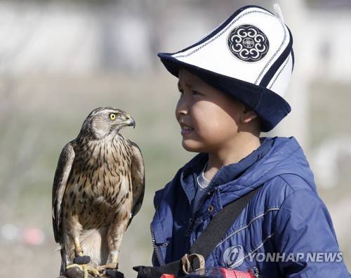 epa10533719 A Kyrgyz boy holds his falcon during the traditional Salburun hunting festival in Bishkek, Kyrgyzstan, 20 March 2023. The festival takes place in Bishkek on the eve of the Nooruz holiday. Nooruz, also called Novruz, marks the first day of spring and is celebrated on the day of the astronomical vernal equinox, which usually falls on 21 March. EPA/IGOR KOVALENKO