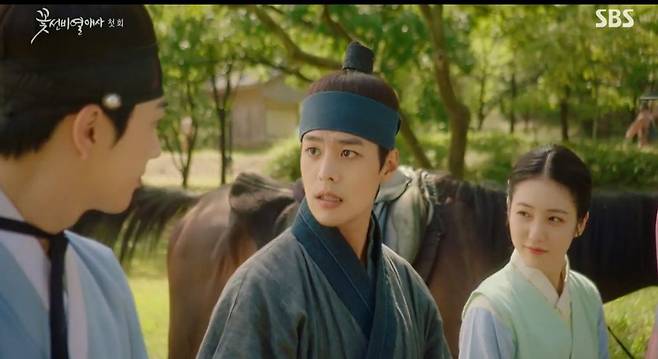 20일 SBS '꽃선비 열애사' 첫 회에선 윤단오(신예은 분)과 강산(려운 분) 김시열(강훈 분)의 첫 만남이 그려졌다.