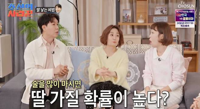 이어 “어디서 들으니 술을 한 잔 하면 몸이 알칼리성이 된다고 하더라. 내가 평생 그걸 신경 써본 적이 없는데 신체가 알칼리성이 돼야 딸을 가질 확률이 높아진다는 속설이 있더라”고 진지하게 말했다.