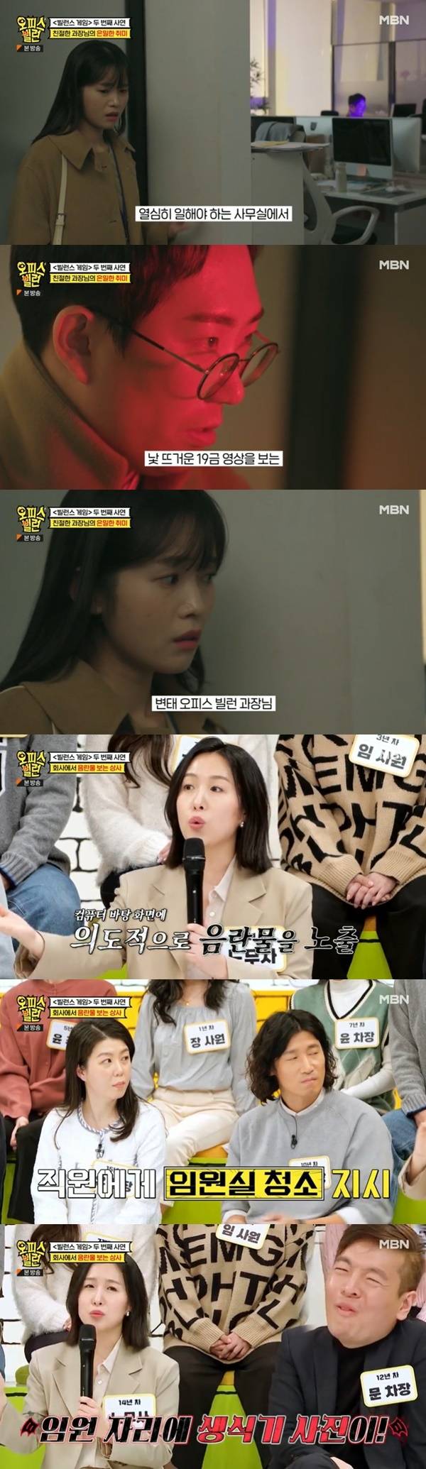 시각적 성희롱 오피스 빌런의 만행이 모두의 분노를 샀지만 이날 방송에서는 야동 빌런 보다 갑질 빌런이 압도적으로 많은 표를 얻었다.