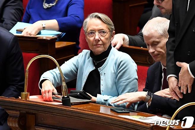 (AFP=뉴스1) 김민수 기자 = 엘리자베트 보른 프랑스 총리가 20일(현지시간) 하원에서 열린 두 번째 불신임안 투표 현장에 앉아 있다. 2023.03.20/뉴스1