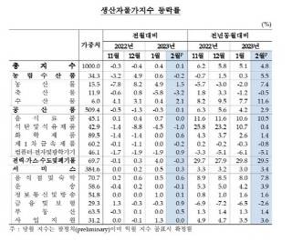 국내 출하에 수출품까지 더한 2월 총산출물가지수도 1월보다 0.4% 상승한 것으로 파악됐다.