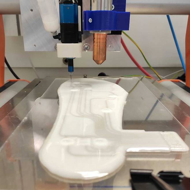 스위스 연방 공과대학과 로잔 연방공대의 과학자들은 여기서 한 걸음 더 나아가 3D 프린터로 출력한 맞춤형 깔창 내부에 압력 센서를 삽입할 수 있는 기술을 개발했습니다. 3D 프린터로 만든 맞춤형 깔창이나 웨어러블 기기로 압력을 감지하는 스마트 깔창에 이어 3D 프린팅 스마트 깔창을 개발한 것입니다. 물론 이를 위해서는 센서와 전자 회로를 3D 프린터로 출력할 수 있어야 합니다.