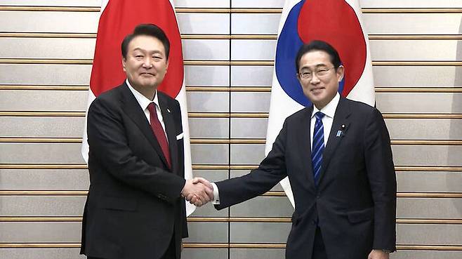 정상회담 직전 한일 통상당국이 수출규제 해제를 발표했고, 윤석열 대통령은 이후 회담 공동기자회견에서 "조금 전 정상회담에서 지소미아 완전 정상화를 선언했다"고 밝힌 바 있습니다.