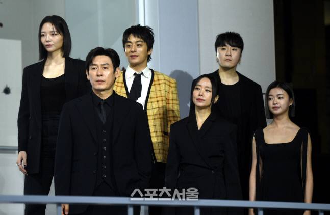 이솜, 설경구, 구교환, 전도연, 변성현 감독, 김시아(왼쪽부터)가 21일 그랜드인터컨티넨탈 파르나스 서울에서 열린 넷플릭스(Netflix) 오리지널 영화 '길복순' 제작보고회에서 포토타임을 갖고 있다.