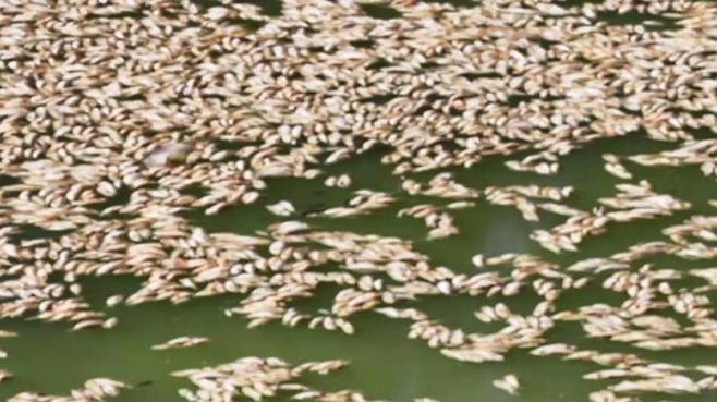 극심한 홍수로 물이 혼탁해지면서 가뜩이나 물속 산소량이 줄었는데 폭염으로 더욱 부족해지면서 이런 참극을 불러온 것입니다.