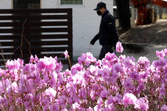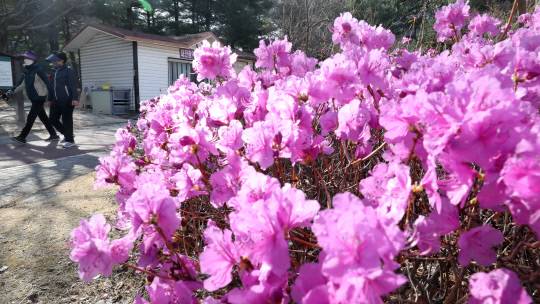 낮 최고기온이 23도까지 오르는 등 절기상 춘분인 21일 대전 서구 3·8의거둔지미공원에 활짝 핀 진달래가 완연한 봄을 알리고 있다.