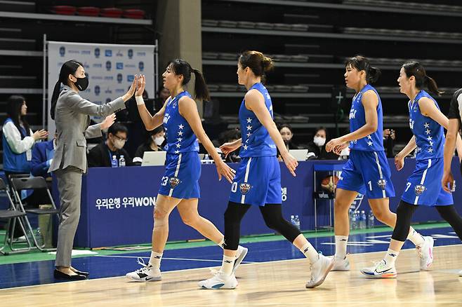 이미 벌어진 18점 차는 컸다. 4쿼터 우리은행은 잠시 BNK의 추격을 허용했으나, 때마다 고른 득점으로 달아나며 두 자리 점수 차를 유지했다. 경기 종료 2분 55초 전 벤치 멤버를 대거 투입하며 승리를 예감했다.