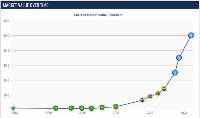 센터백 가운데 15번째로 높은 몸값이다. 현시점 기준 가장 높은 가치를 지닌 센터백은 요슈코 그바르디올(라이프치히)이다. 그는 7,500만 유로(약 1,050억 원)로 평가받고 있다. 그의 뒤를 이어 후벵 디아스(맨체스터 시티), 마티아스 데 리흐트(바이에른 뮌헨) 등이 높은 몸값을 자랑한다.