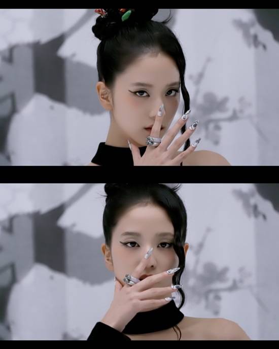 고혹적 아우라를 내뿜는 지수는 우아한 몸짓으로 시선을 사로잡는다. 25초 남짓의 짧은 분량이지만 큰 움직임 없이 오롯이 강렬한 눈빛과 깊이감 있는 표현력으로 한 순간도 팬들의 시선을 뗄 수 없게 만들었다.