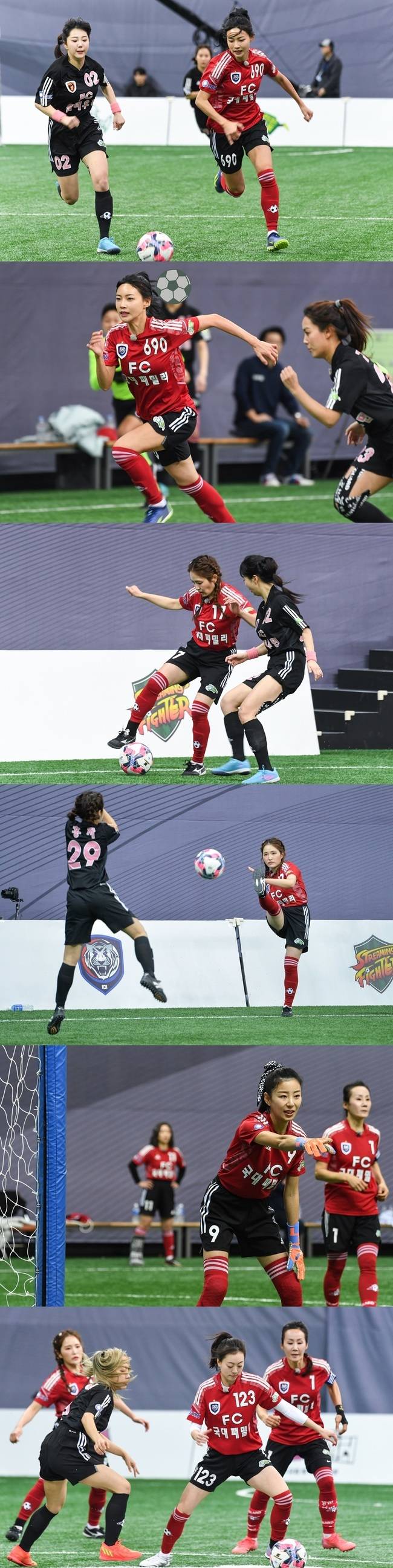 한편, 뛰어난 비주얼과 운동 신경으로 화제를 낳았던 뉴멤버 김민지와 나미해가 보여줄 활약상 또한 관전 포인트다. 이번 경기를 통해 정식 데뷔전을 치르는 두 멤버는 신인답지 않은 실력으로 관심을 모았다. ‘육상 여신’ 김민지는 본인의 장기를 살린 번개 스프린트로 ‘FC원더우먼’의 치달러 김가영에게 도전장을 내밀었다. ’중꺾마‘ 나상호 선수의 누나 나미해는 국대급 볼 컨트롤로 상대는 물론, 두 MC를 깜짝 놀라게 했다는 후문이다.