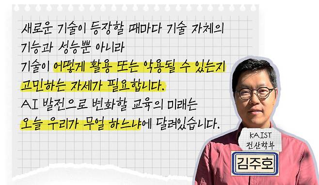 배우는 입장에서는 AI 덕분에 더욱 편하고 쉬운 학습이 가능해져 좋기도 하면서, AI가 내가 할 일들을 너무나도 쉽게 해내는 걸 보면서 과연 뭘 배워야 살아남을 수 있을지 자괴감이 들기도 한다. 가르치는 입장에서는 강의계획, 자료, 시험문제 등을 AI의 도움으로 쉽게 만들 수 있지만, 기존의 지식 전달 위주의 강의와 과제, 시험의 유효기간이 다했음을 직감하고 새로운 교육 방법을 고민한다.