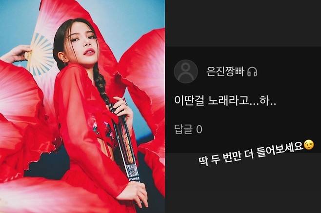 이어 "이딴 걸 노래라고...하..."라는 반응에는 "딱 두 번만 더 들어보세요"라며 윙크하는 이모티콘을 더했다.