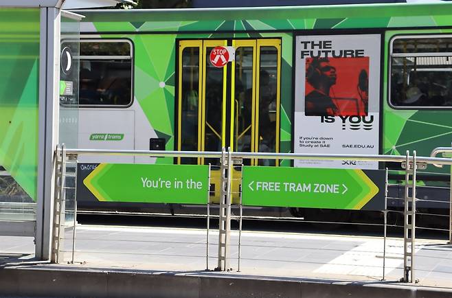 | ▲ "여기는 무료 트램 존입니다." 멜버른 시내 트램 정거장의 모습이다. |