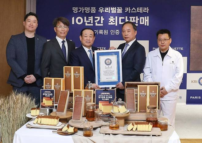 [어제(21일) 서울 양재동 SPC그룹 사옥에서 진행된 파리바게뜨 '명가명품 우리벌꿀 카스텔라'의 KRI한국기록원 인증식 (사진=SPC그룹 제공)]