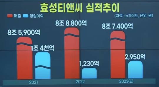 또 지난해 효성티앤씨의 실적 악화는 효성그룹 전체에 큰 영향을 미칠만큼 영향력이 컸고요.
