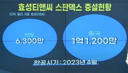 효성티앤씨는 1억 7,500만 달러(2,278억 원)을 투자해 다음 달 중국과 인도에 스판덱스 생산설비 증설을 마무리합니다.