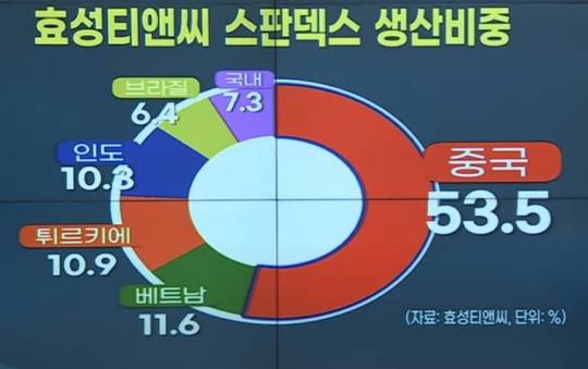 전 세계 스판덱스 생산기지는 주로 중국에 포진돼 있는데요.
