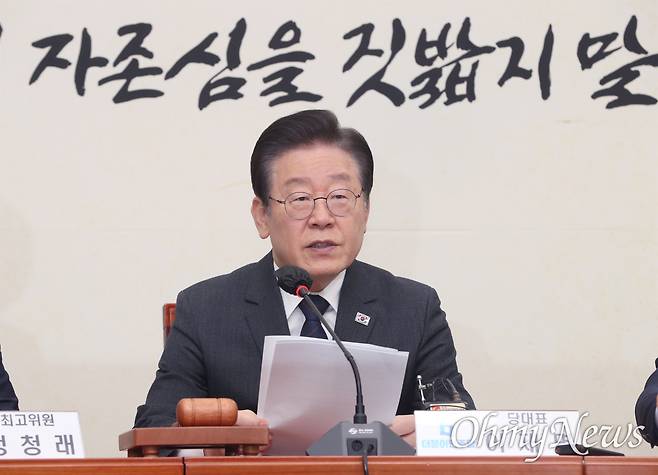 | ▲ 이재명 더불어민주당 대표가 22일 서울 여의도 국회에서 열린 최고위원회의에서 발언하고 있다. |