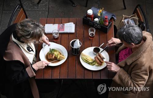 epa10536846 Customers at a restaurant in London, Britain, 22 March 2023. The likelihood of a hike in interest rates has been increased as UK inflation rose to 10.4 percent driven by the salad shortages. EPA/ANDY RAIN