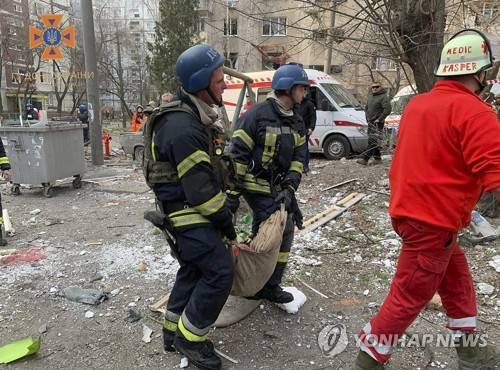epa10536879 A handout photo made available by the Ukrainian State Emergency Service shows rescuers work at a residential building after it was hit in a missile strike in Zaporizhzhia, Ukraine, 22 March 2023. At least 25 persons were injured and one of them died later in the hospital, according to the State Emergency Service. Russian troops on 24 February 2022, entered Ukrainian territory, starting a conflict that has provoked destruction and a humanitarian crisis. EPA/UKRAINE STATE EMERGENCY SERVICE HANDOUT --BEST QUALITY AVAILABLE-- HANDOUT EDITORIAL USE ONLY/NO SALES