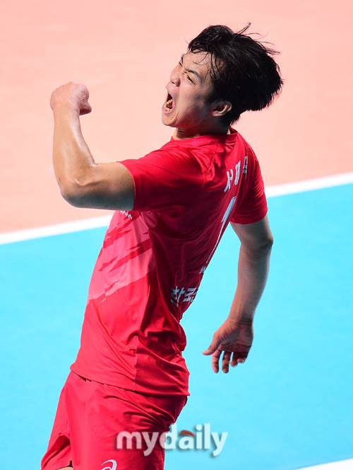 [마이데일리 = 곽경훈 기자] 한국전력 서재덕이 22일 오후 서울 장충체육관에서 진행된 '도드람 2022~2023 V리그' 준플레이오프 한국전력-우리카드의 경기에서 세트 스코어 3-1(25-19, 25-18, 18-25, 25-22)로 승리한 뒤 포효하고 있다.