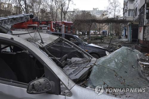 Cars damaged by a Russian missile that hit a residential multi-story building in southeastern city of Zaporizhzhia, Ukraine, Wednesday, March 22, 2023. (AP Photo/Andriy Andriyenko)