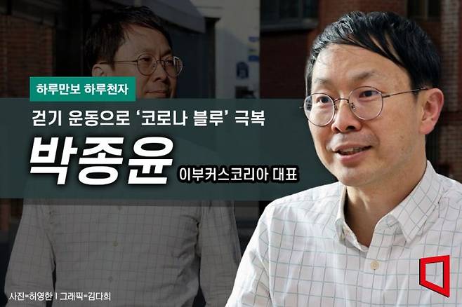 서울 중구의 사무실에서 만난 이부커스코리아의 박종윤 대표는 걷기 운동을 시작한 이후 나타난 변화에 대해 묻자 이같이 답했다. 하루 한 번 꾸준히 걷는 것만으로도 몸과 마음의 건강을 지킬 수 있었다는 뜻이다.