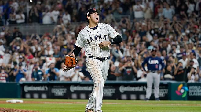 오타니는 미국과의 결승전 3-2로 앞선 9회초에 투수로 등판해 2사 후 에인절스 동료이자, 미국 주장에 현역 최고 타자로 손꼽히는 마이크 트라우트를 날카로운 슬라이더를 뿌려 삼진 처리하며 경기를 끝냈습니다.