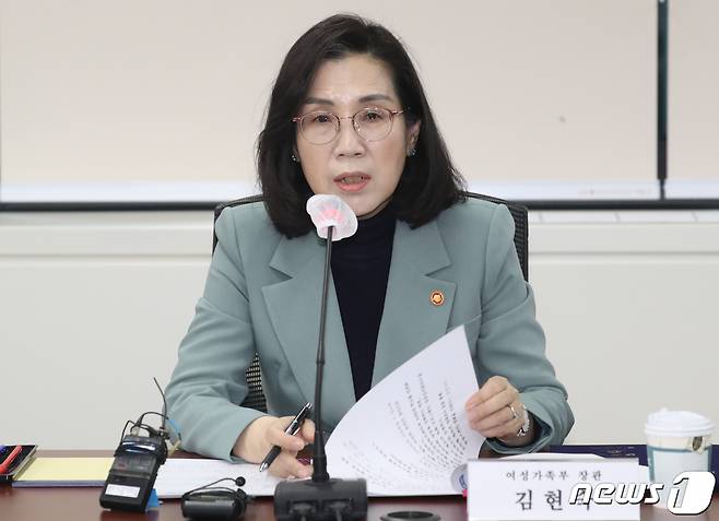(서울=뉴스1) 김명섭 기자 = 김현숙 여성가족부 장관이 23일 오전 서울 종로구 세종대로 정부서울청사에서 열린 고위기 청소년 마음건강을 위한 관계기관 업무협약에서 모두 발언을 하고 있다. 2023.3.23/뉴스1