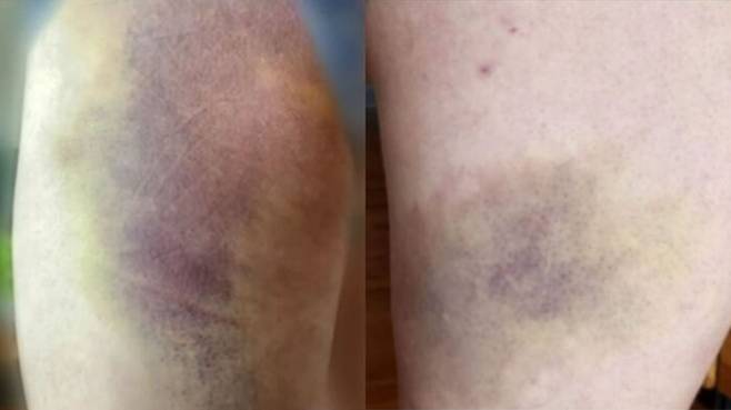A 군은 폭행으로 인해 허벅지와 엉덩이가 시퍼렇게 멍들었고 가슴 부위도 심하게 짓눌려, 전치 3주의 진단을 받고 통원 치료 중입니다.