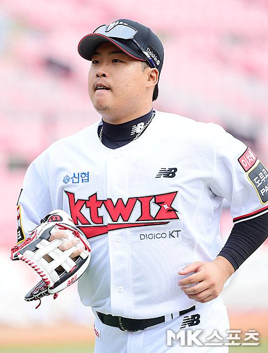 우익수로 선발 출장한 kt 강백호가 3회에 수비위치를 좌익수로 변경한 후 공수교대를 위해 더그아웃으로 향하고 있다.