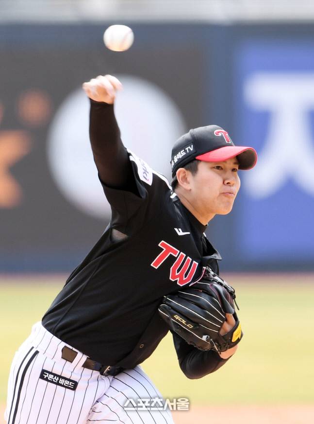 LG 강효종이 23일 수원 KT위즈파크에서 열린 2023 KBO리그 KT와의 시범경기에 선발 등판해 힘차게 공을 던지고 있다. 2023. 3. 23.