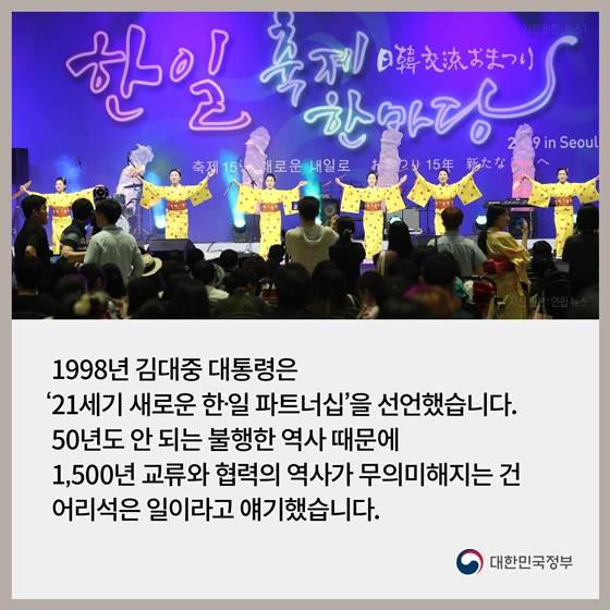 1998년 김대중 대통령은 ‘21세기 새로운 한·일 파트너십’을 선언했습니다.