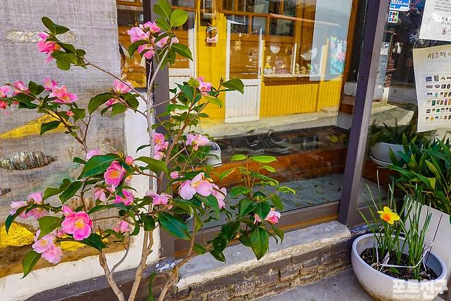 가게 앞에는 수선화와 동백 꽃이 피어 이미 도착한 봄을 알립니다.