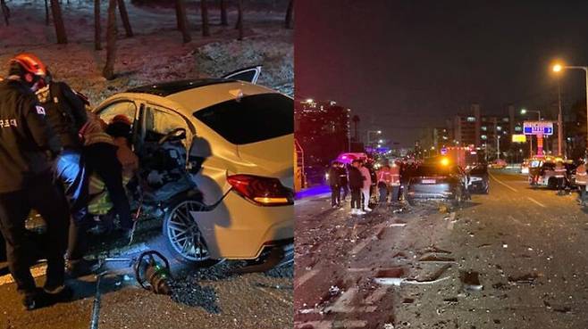 경기 시흥경찰서에 따르면 지난 1월 26일 밤 10시쯤 시흥시 정왕동에서 한 음주운전 차량이 중앙선을 넘어 반대 차선을 이용하는 차량 5대를 들이받는 사고가 발생했습니다.