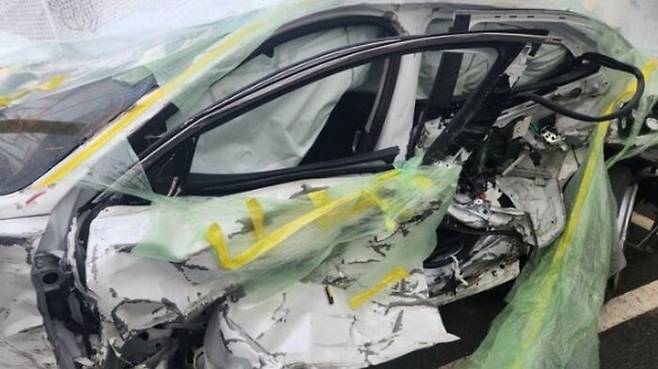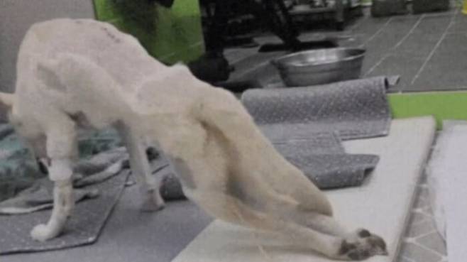 해당 게시글에서 B 씨가 공개한 사진에는 치료를 위해 몸 곳곳의 털을 잘라낸 반려견 쩔미가 움직이지 않는 뒷다리를 끌며 걷는 모습과 형체를 알아볼 수 없을 정도로 크게 손상된 차량의 모습이 담겼습니다.