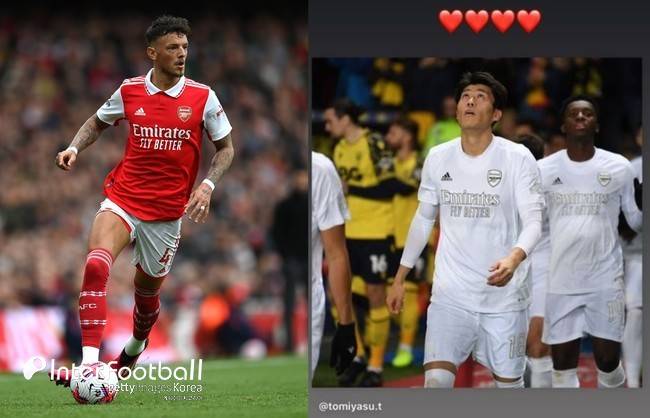 포지션 경쟁자인 화이트도 애정을 드러냈다. 그는 하트 4개(♥♥♥♥)로 토미야스를 응원했다. 이제 아스널은 남은 시즌 화이트의 대체자를 고민해야 한다. 롭 홀딩이 토미야스의 공백을 채울 선수다.