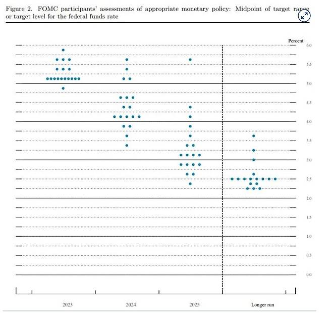이날 FOMC 성명서에서는 인플레이션을 2%로 되돌리기 위해 충분히 경제 제약적인 통화정책 스탠스를 확보하려면 "목표 금리 범위의 지속적인 인상이 적절하다"는 문장이 빠졌다. 이 표현은 1년 전 금리 인상을 시작할 때부터 FOMC 성명서에 항상 포함됐던 문구였다.